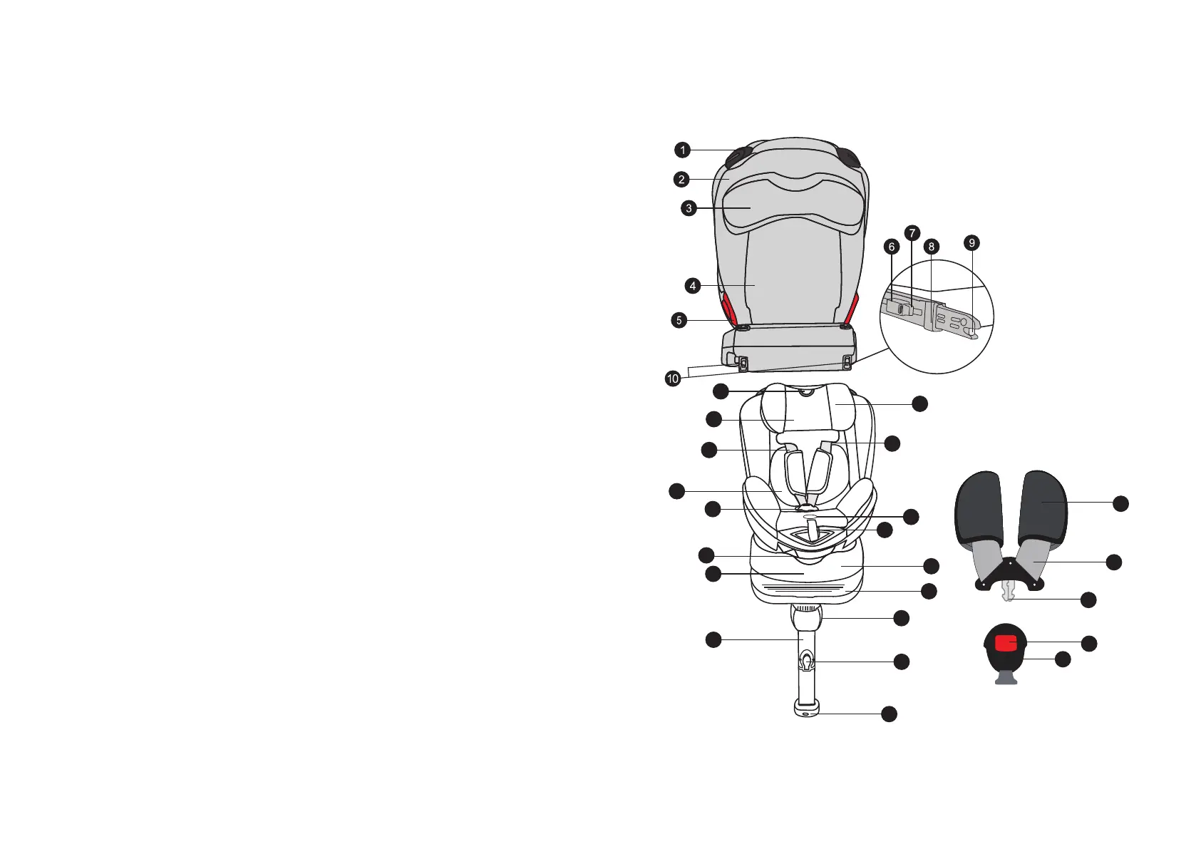 18. Alavanca de ajuste do arnês (sob a ranhura da cobertura do banco)