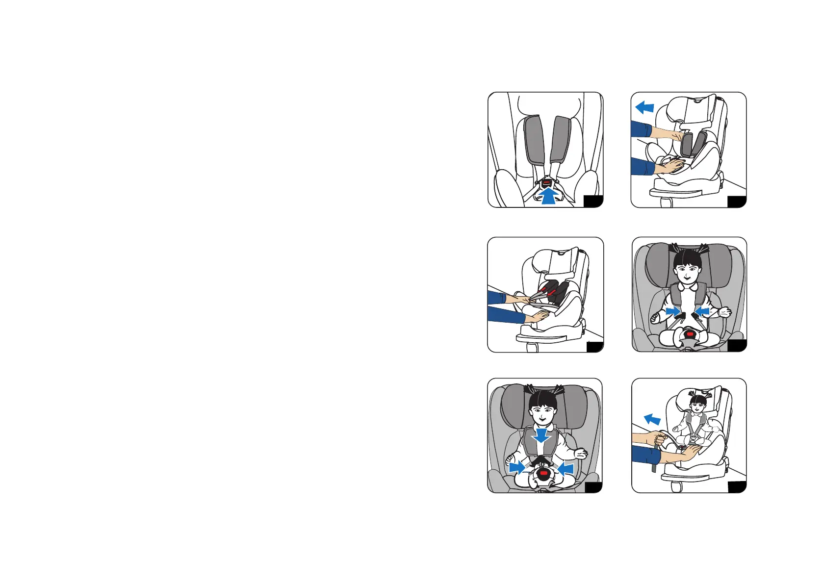 regulacji z przodu fotelika, wskazanej białą strzałką), jednocześnie ciągnąc pasy