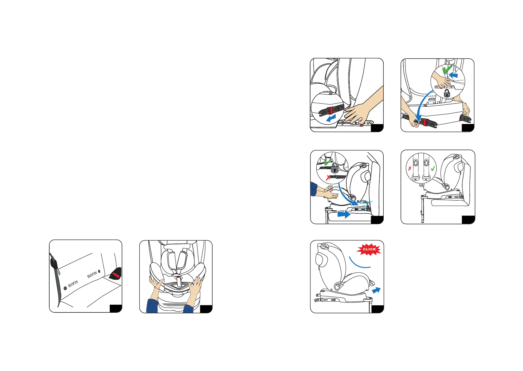 4. Med ISO-FIX-hasperne trukket ud, skal du skubbe barnefastholdelsesanordningen