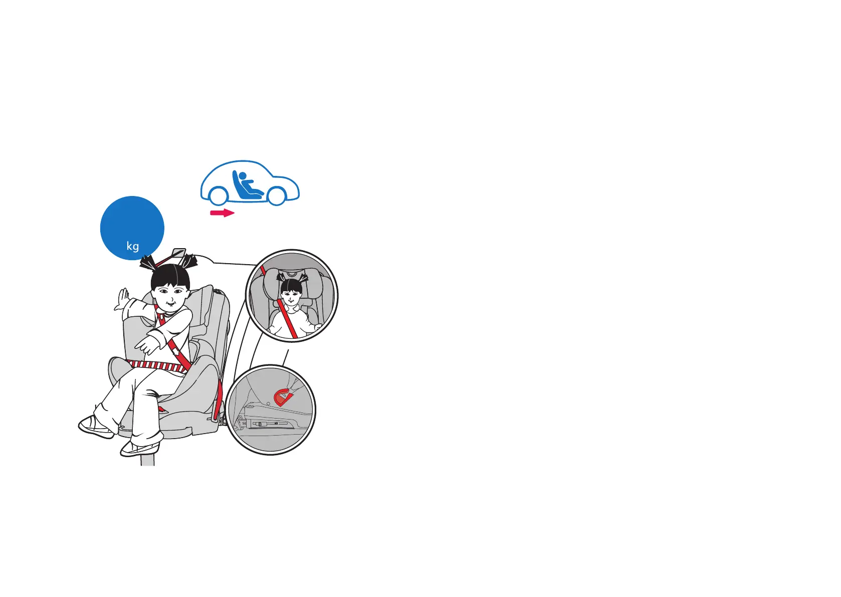 4. Barnet vil nu være sikret med bilens sikkerhedssele eller hoftesele, med