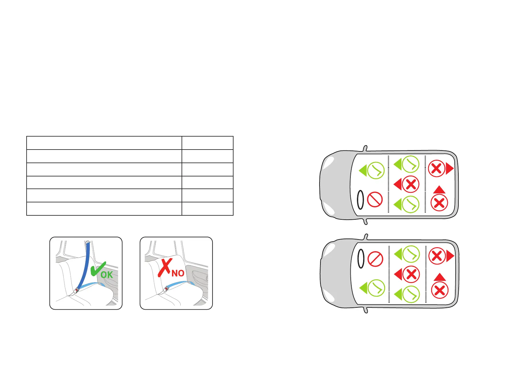 NEVER fasten the child restraint to rear facing or lateral facing vehicle seats.