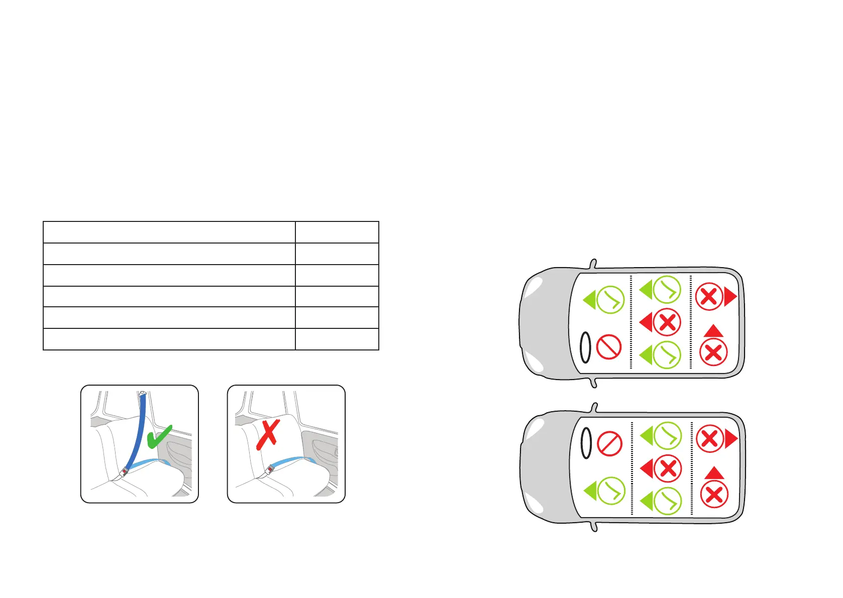 Fare riferimento al grafico sottostante quando si seleziona un sedile del veicolo su cui