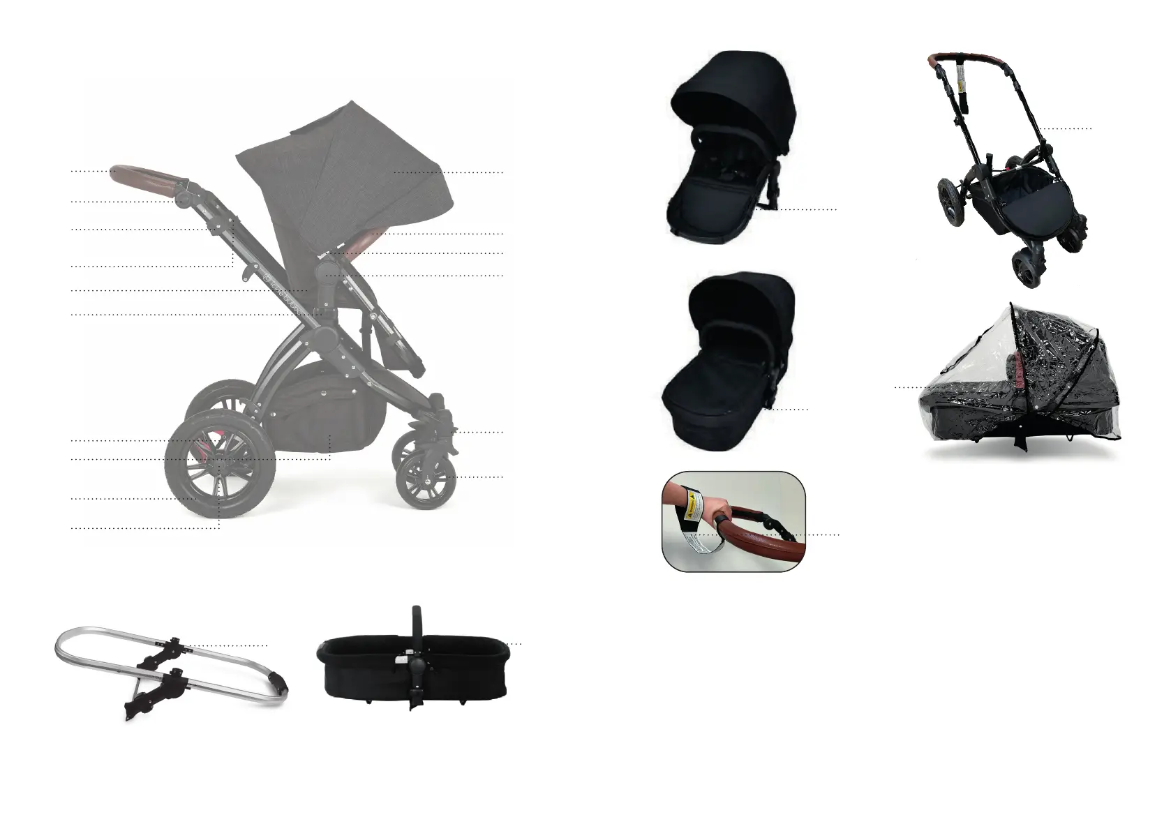 *IMPORTANT: The Carry Cot/Seat Unit Frame (Q) and the Carry Cot Fabric (R) are already assembled. When