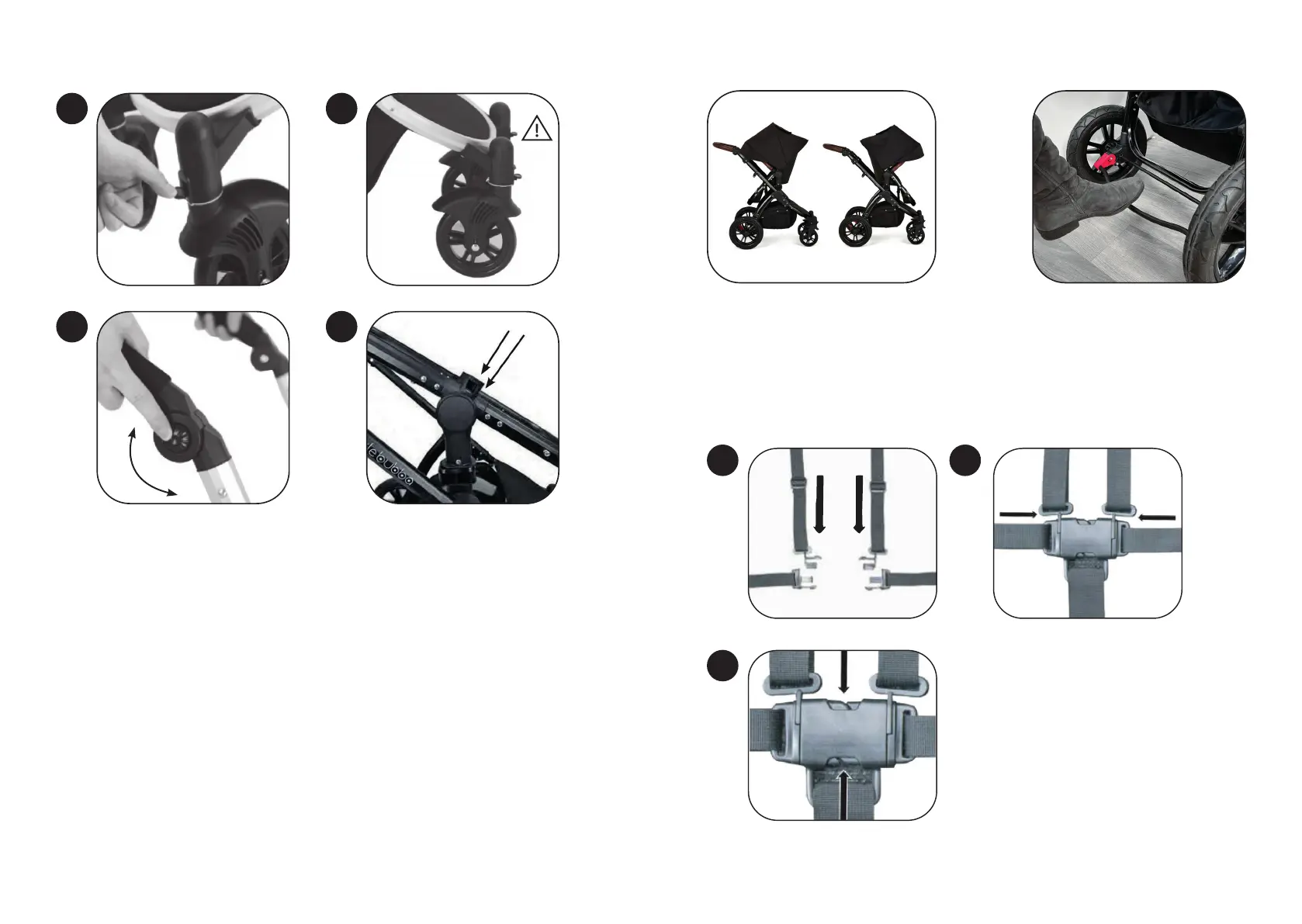 1. To lock the front wheels in place, simply press the button downwards.