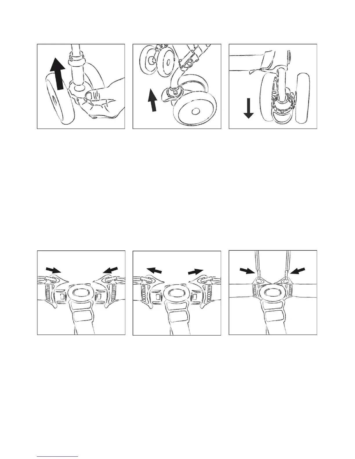 WARNING: THE WHEELS MUST ALWAYS BE BOTH FIXED OR BOTH SWIVEL