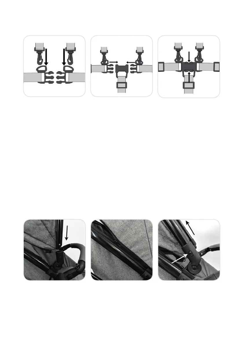 le landau et enfilez chacune des languettes en plastique à travers le petit