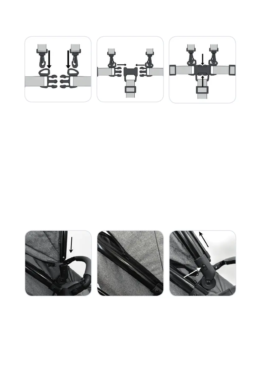 de la abertura de velcro en la parte posterior del cochecito y pase cada una