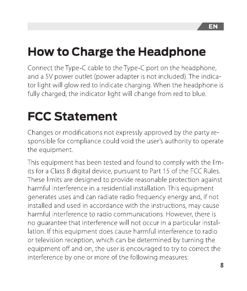 iClever BTH19 - Charging and FCC Statement; Headphone Charging; FCC Compliance