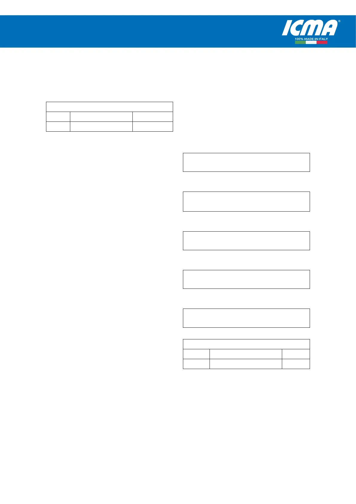 Icma SpA - Via Garavaglia, 4 - 20012 Cuggiono (MI) ITALY Tel: +39 02 97249134 - +39 02 97249135