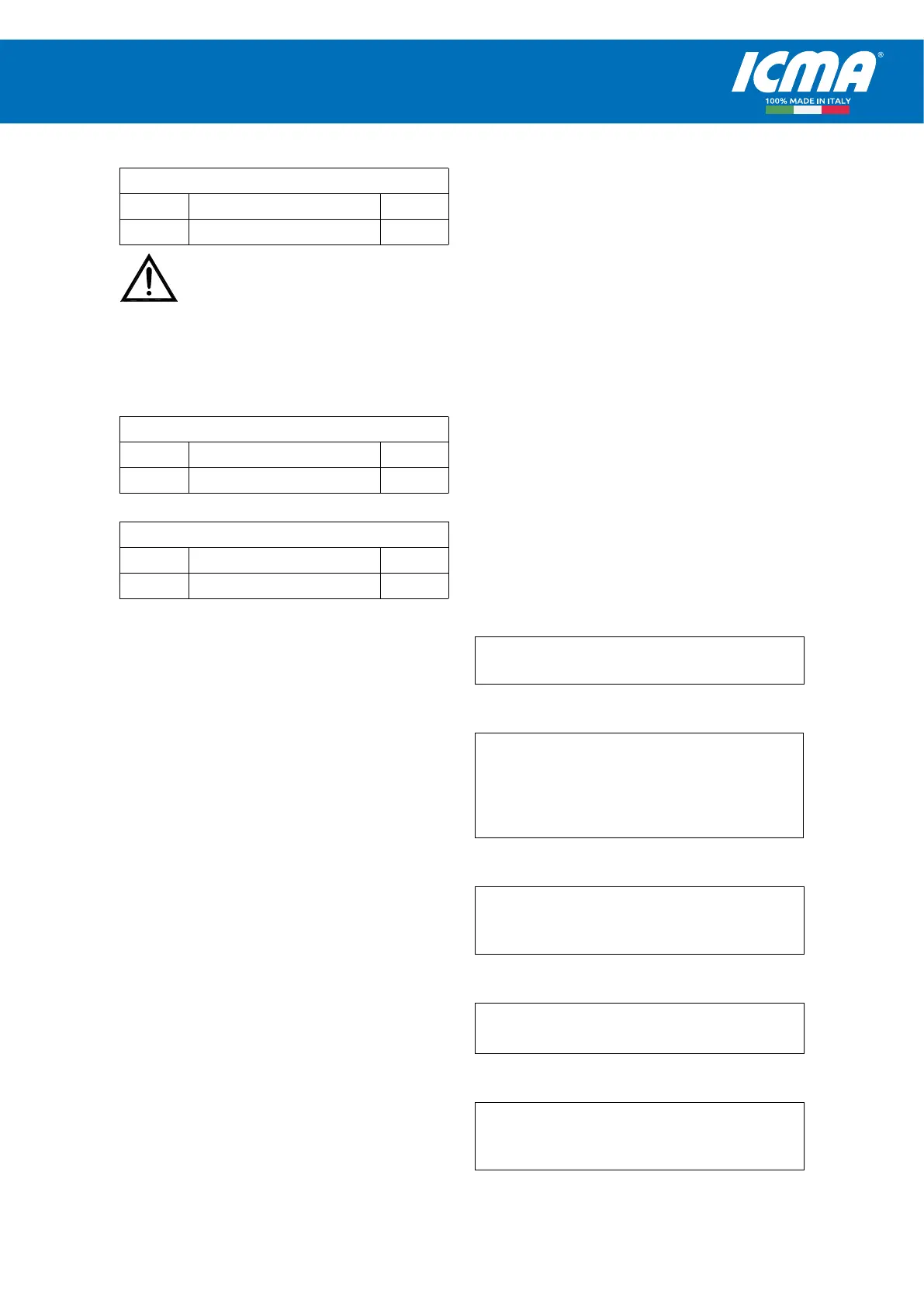 Icma SpA - Via Garavaglia, 4 - 20012 Cuggiono (MI) ITALY Tel: +39 02 97249134 - +39 02 97249135