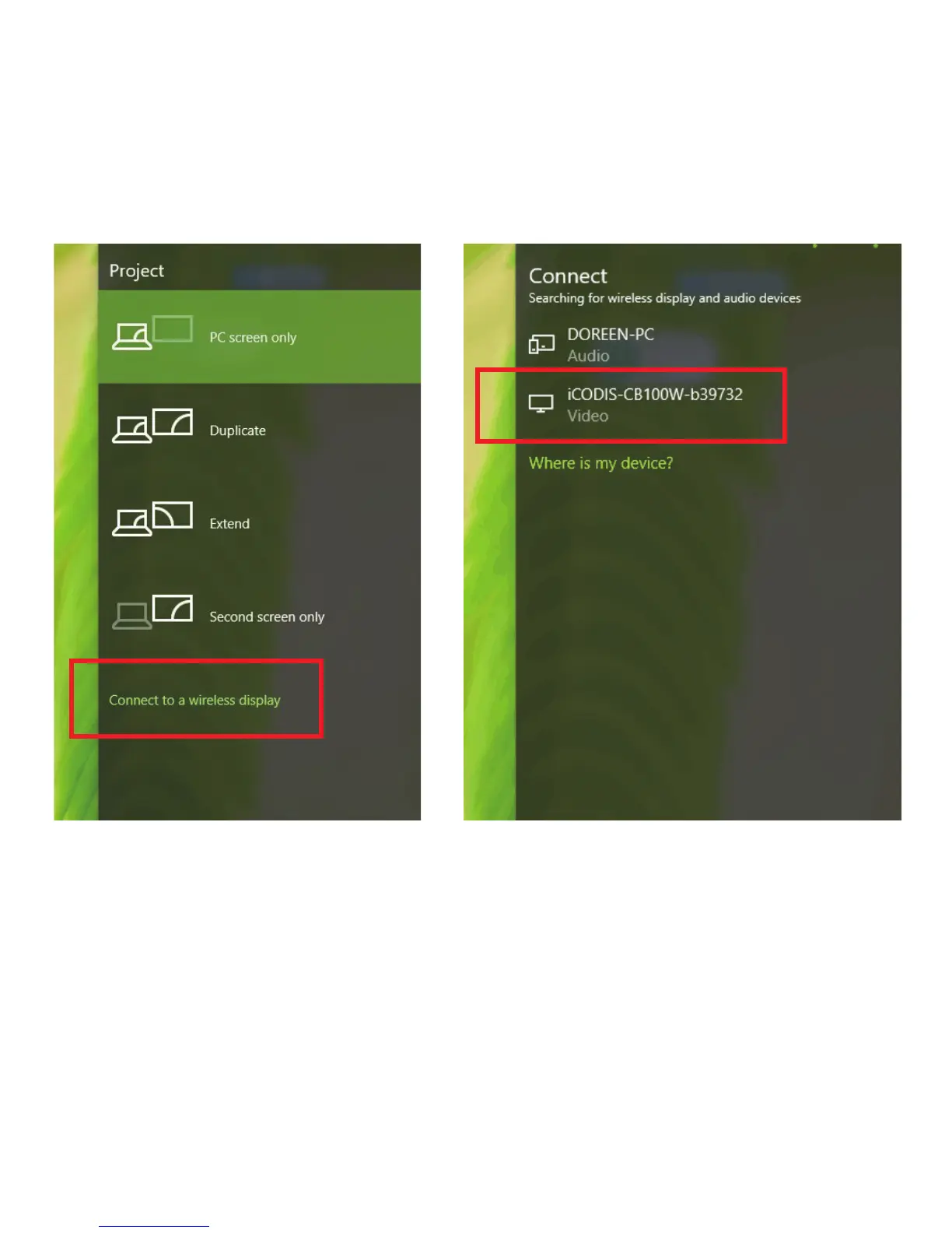 Click connect to a wireless display