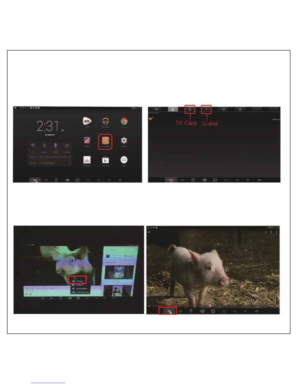 1. Find the file manager in the main page, go to TF card or U-disk file,