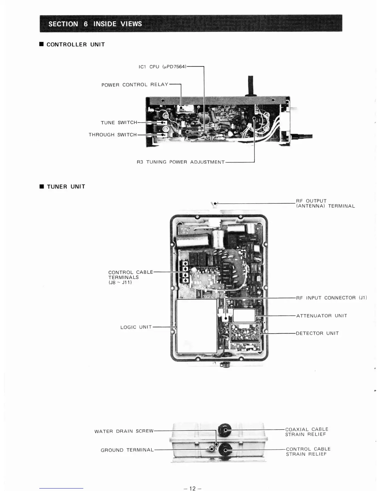 Icom AH-2 - SECTION 6 INSIDE VIEWS; Controller Unit Internal Components; Tuner Unit Internal Components