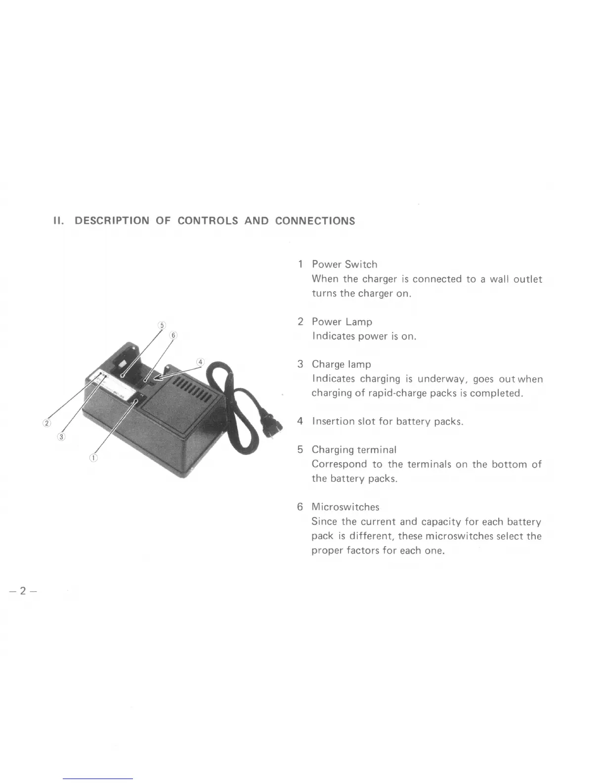 Icom BC-35 - Description of Controls and Connections; Power Switch; Power Lamp; Charge Lamp