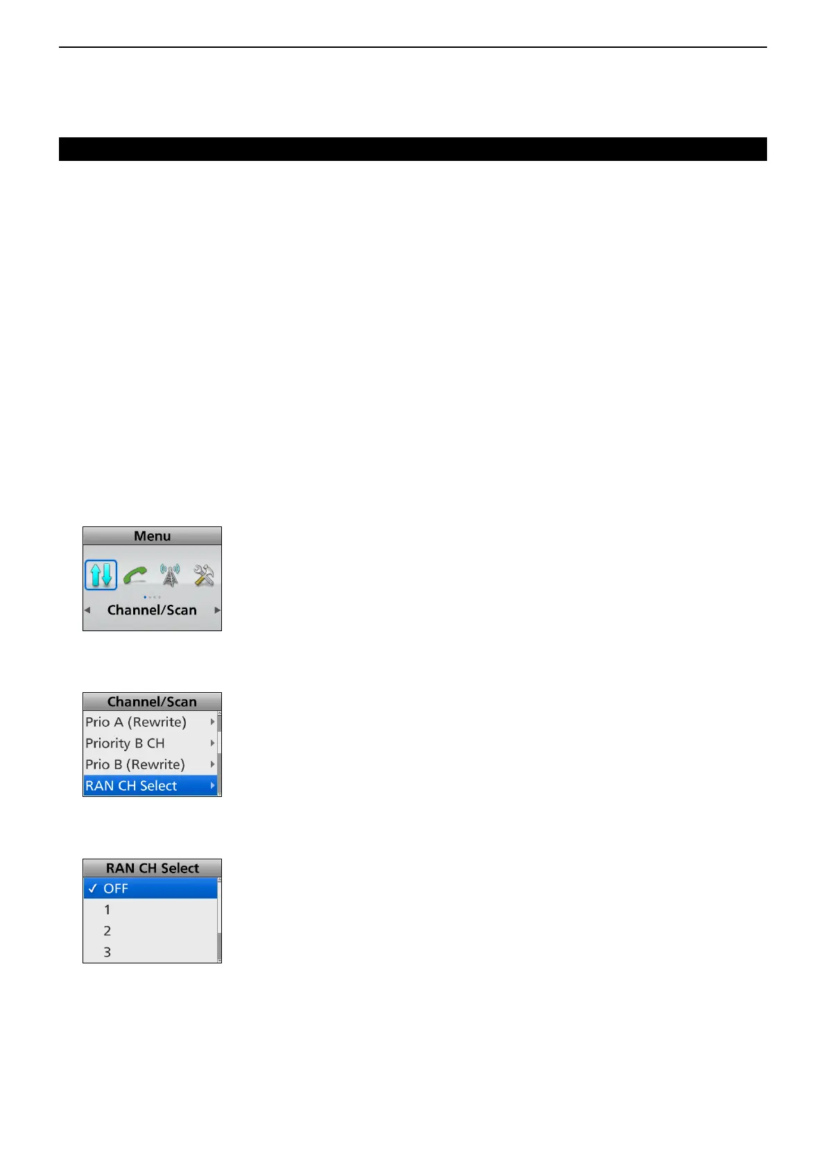(Menu > Channel/Scan > RAN CH Select)