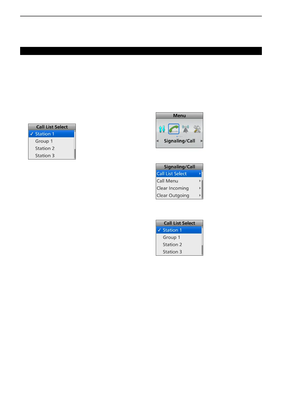 (Menu > Signaling/Call > Call List Select)
