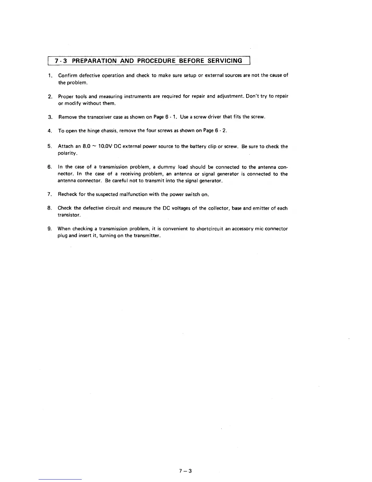 Icom IC-02AT - Service Preparation and Diagnostics