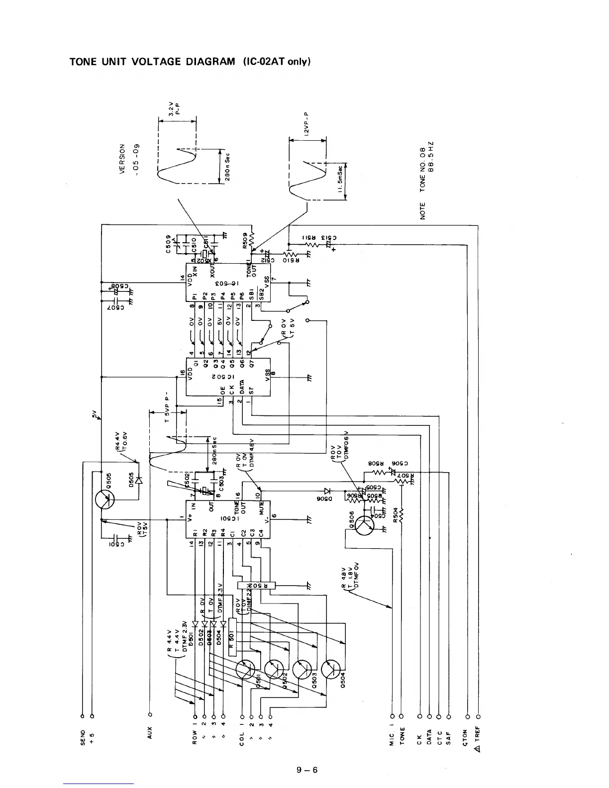 Icom IC-02E - Tone Unit Voltage Diagram
