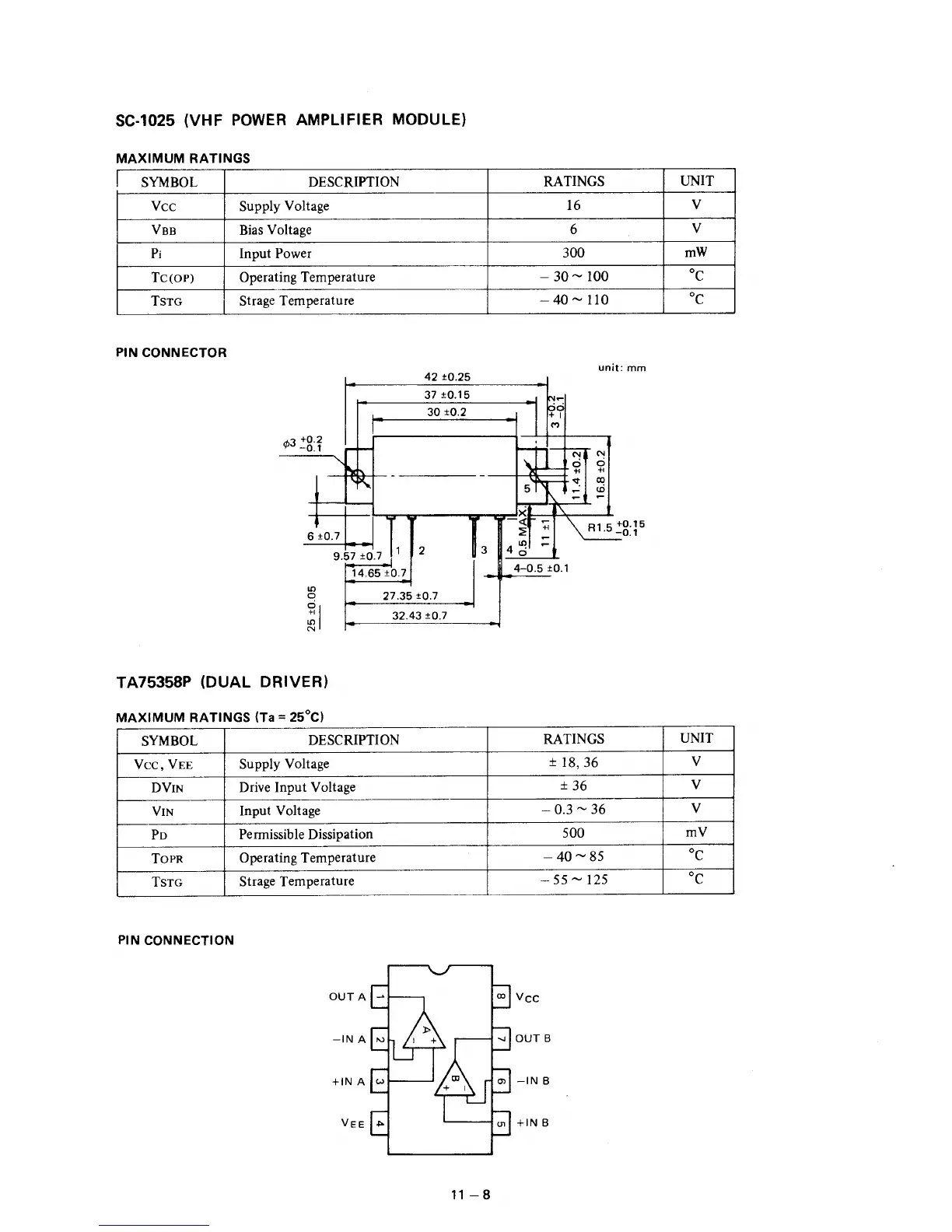 Icom IC-02E - SC-1025 (VHF Power Amplifier Module); TA75358 P (Dual Driver)