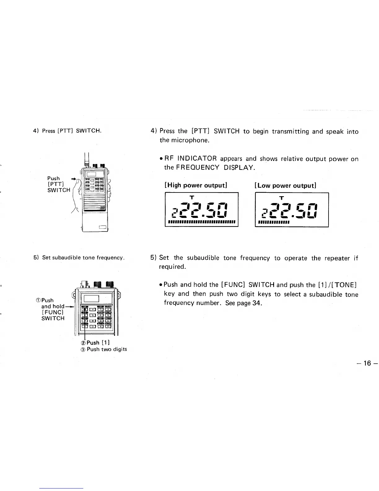 Icom IC-03AT - Pressing PTT Switch and Setting Tone