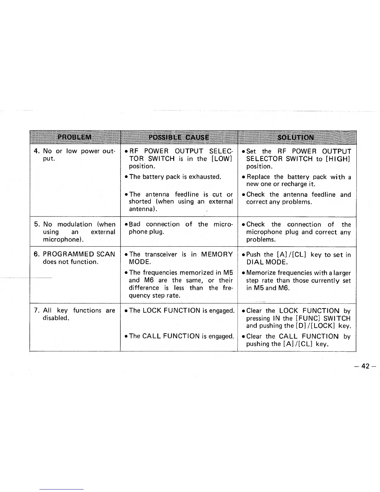 Icom IC-03AT - Power Output and Modulation Issues; Function and Key Issues