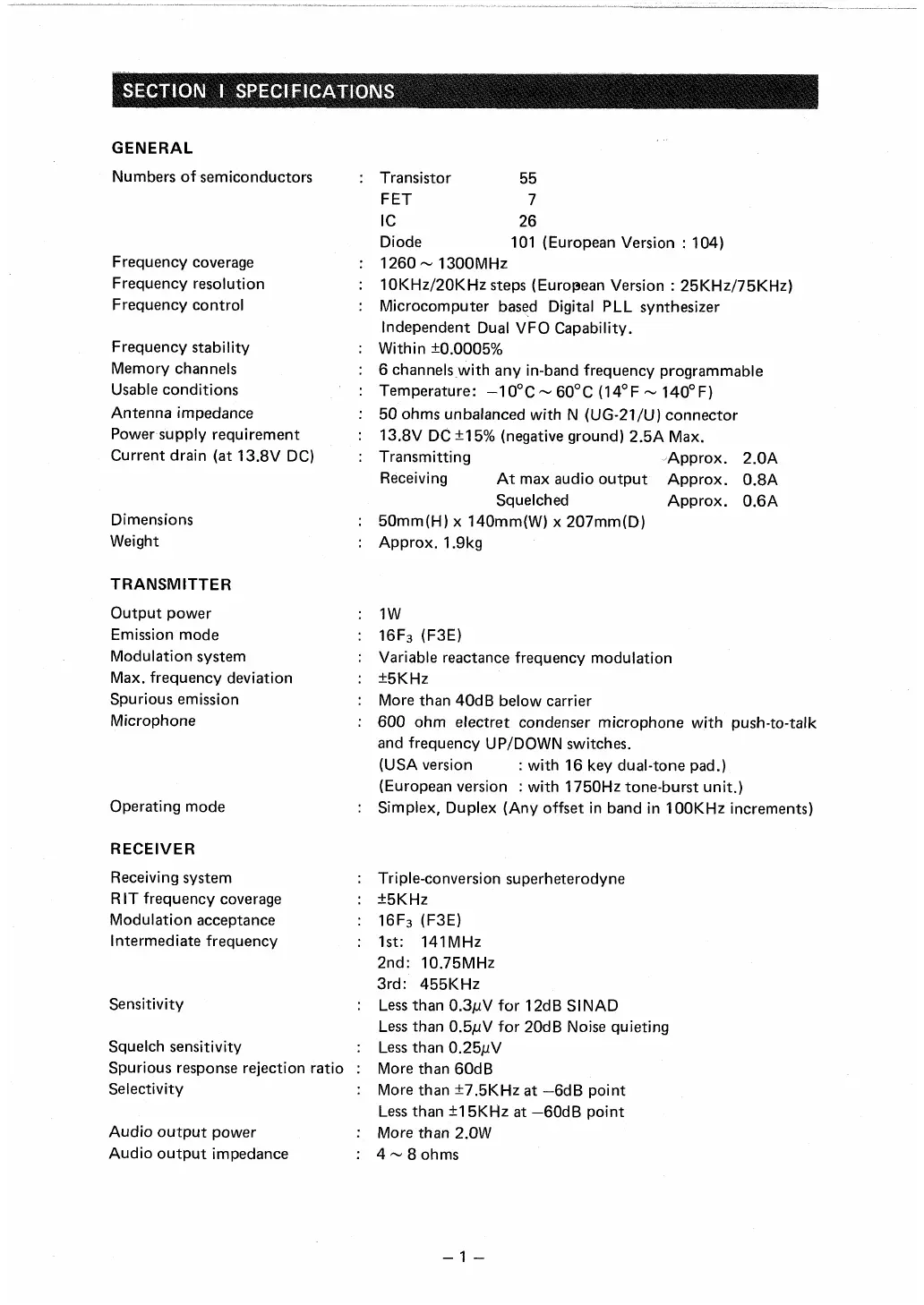 Icom IC-120 - IC-120 Specifications; General Specifications; Transmitter Specifications; Receiver Specifications
