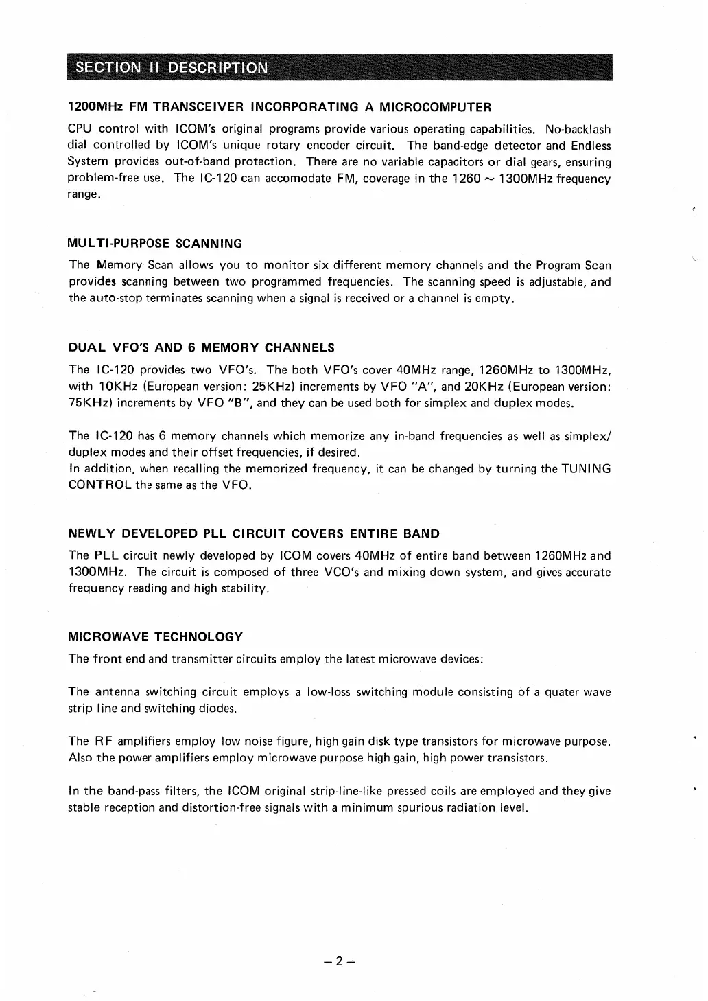 Icom IC-120 - IC-120 Description