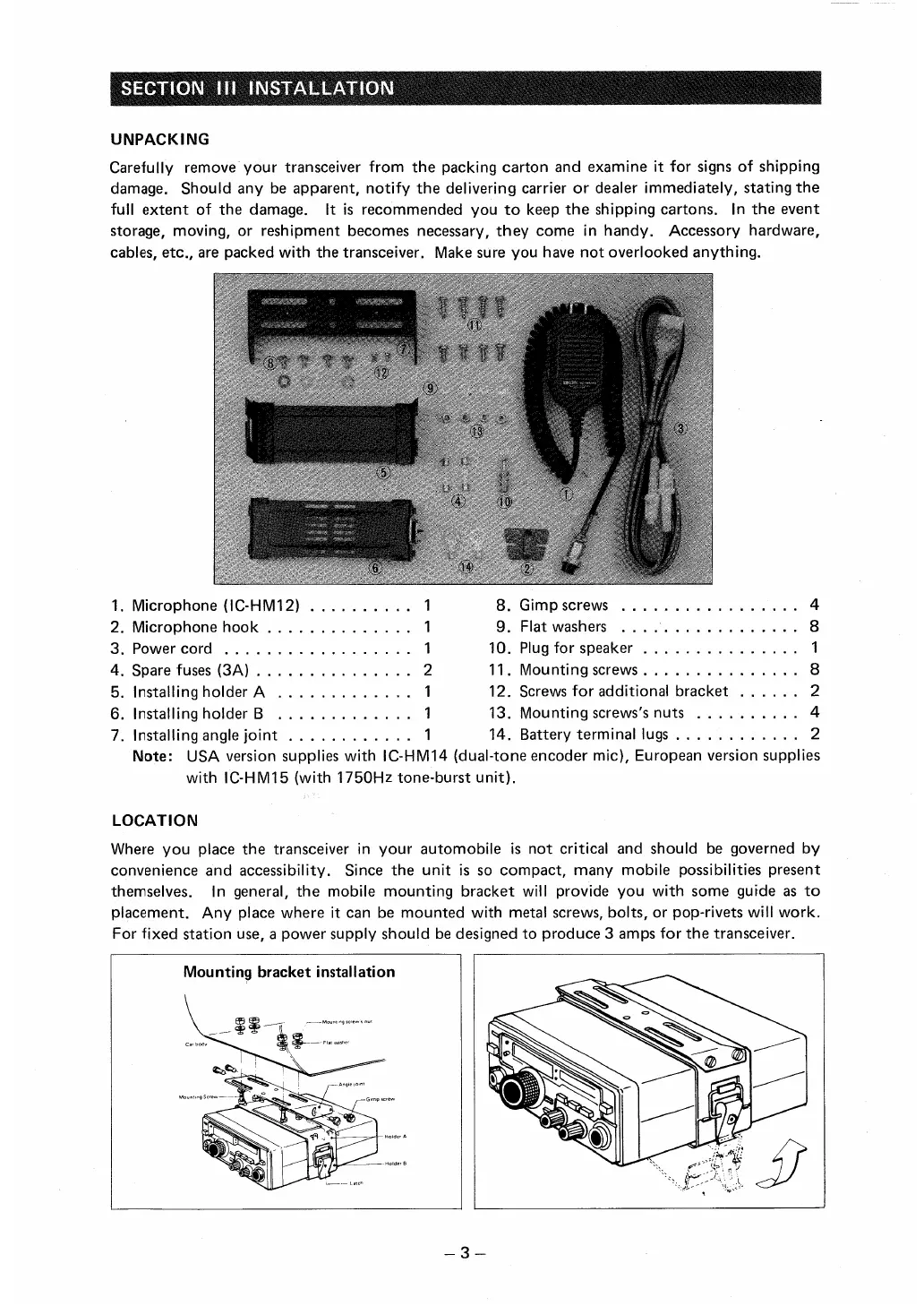 Icom IC-120 - IC-120 Installation Guide; Unpacking and Initial Checks; Location and Mounting Advice