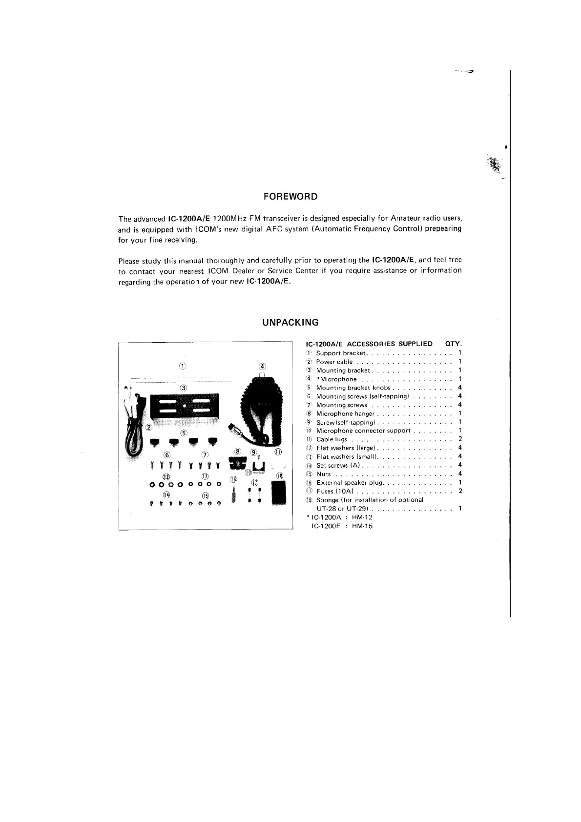 Icom IC-1200A - Unpacking