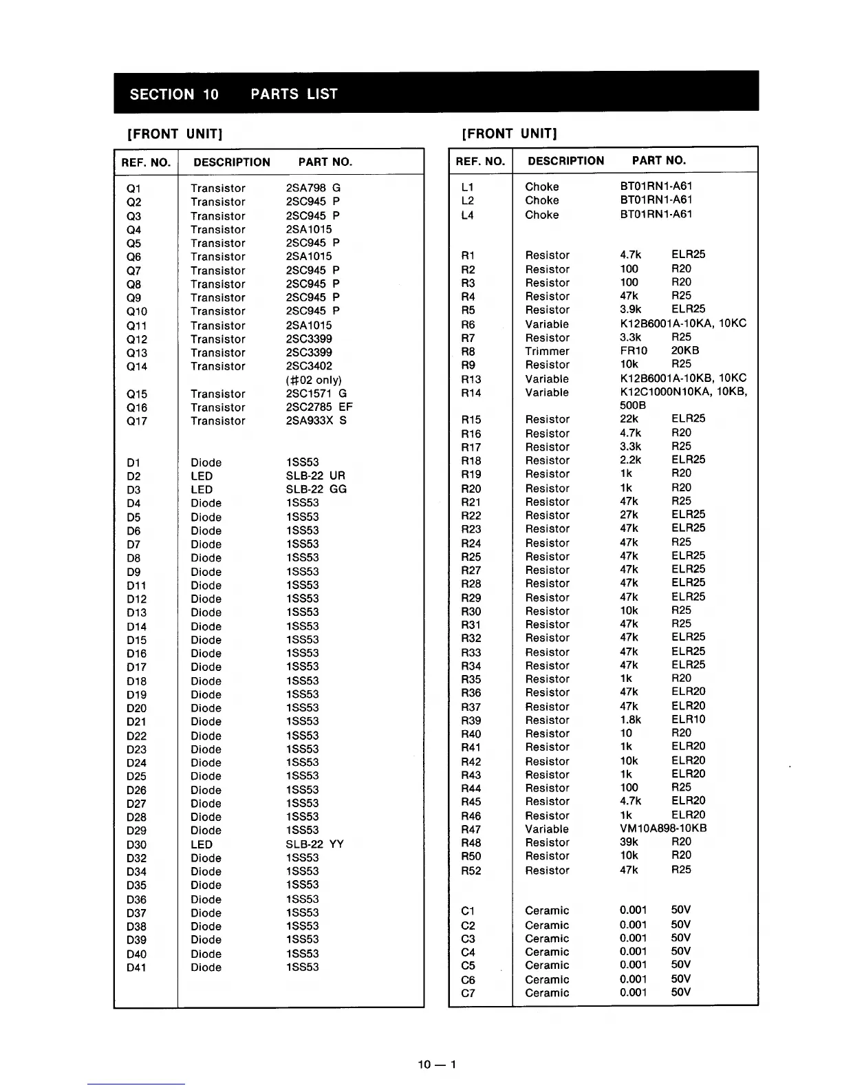Icom IC-1271A - Section 10 Parts List; [Front Unit]
