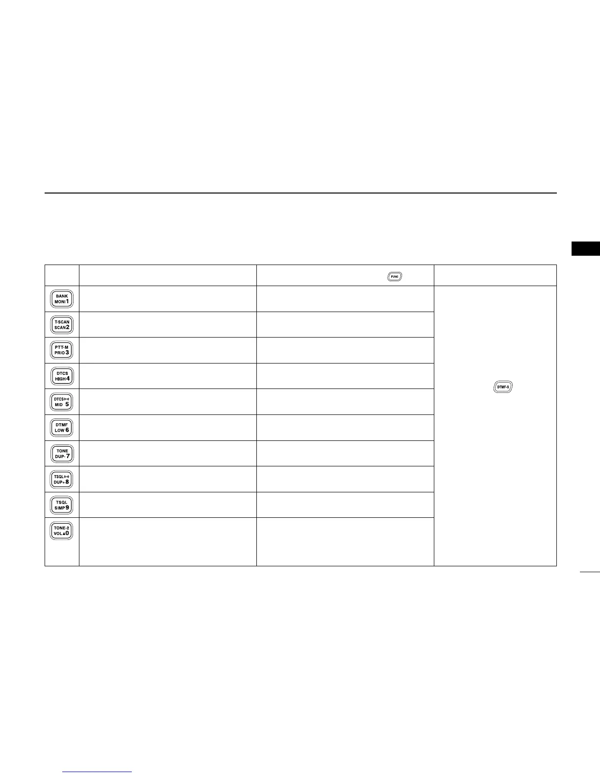 Turns the DTCS squelch ON. (p. 54)