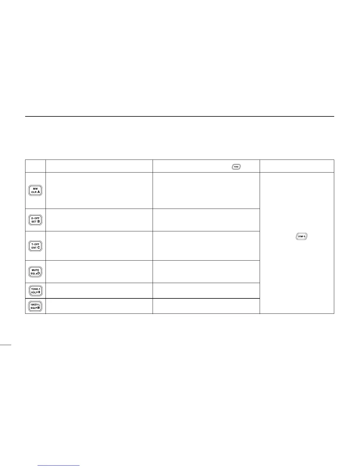 KEY FUNCTION SECONDARY FUNCTION ( +key) OTHER FUNCTIONS