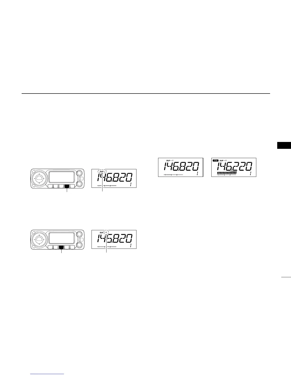 • “DUP–” or “DUP” appears to indicate the transmit frequency for