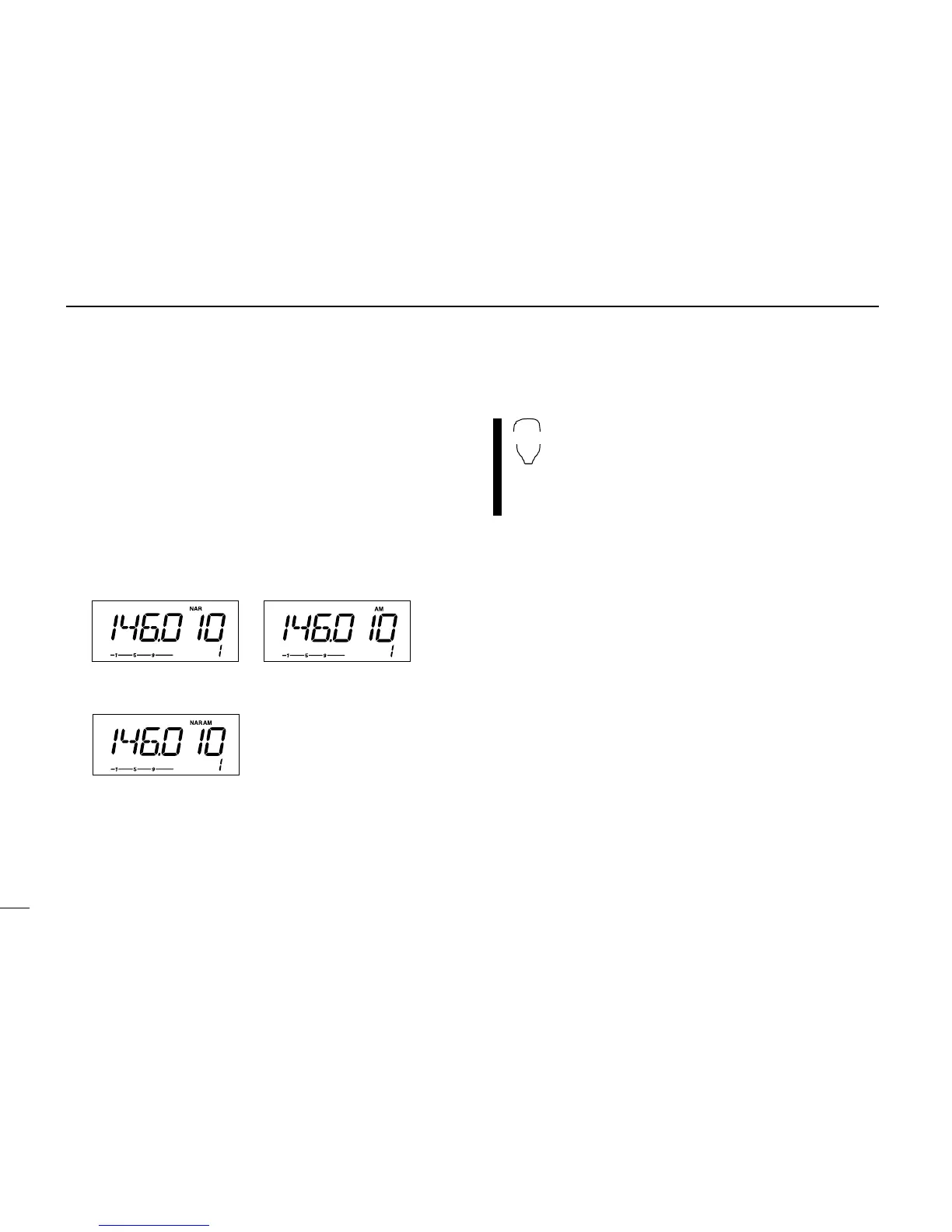 • “NAR” (FM narrow), “AM” and “NAR AM” appears in sequence.