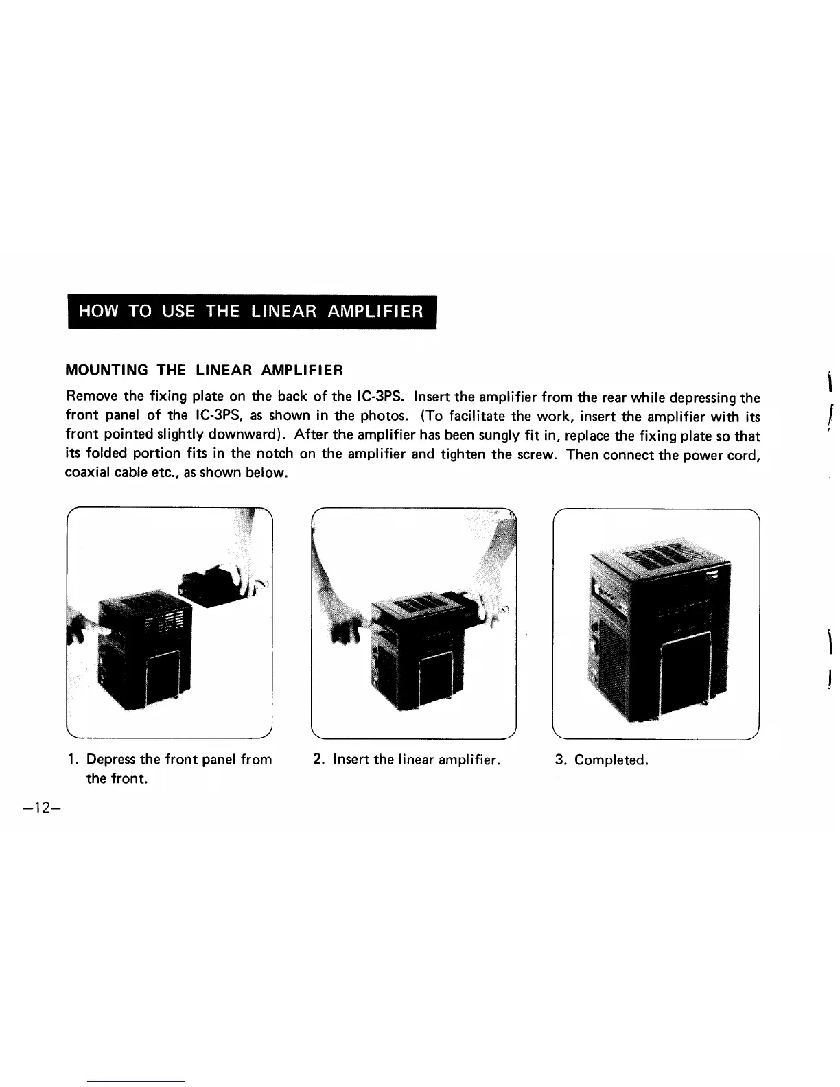 Icom IC-20L - Installing the Linear Amplifier; Mounting Procedure in IC-3 PS