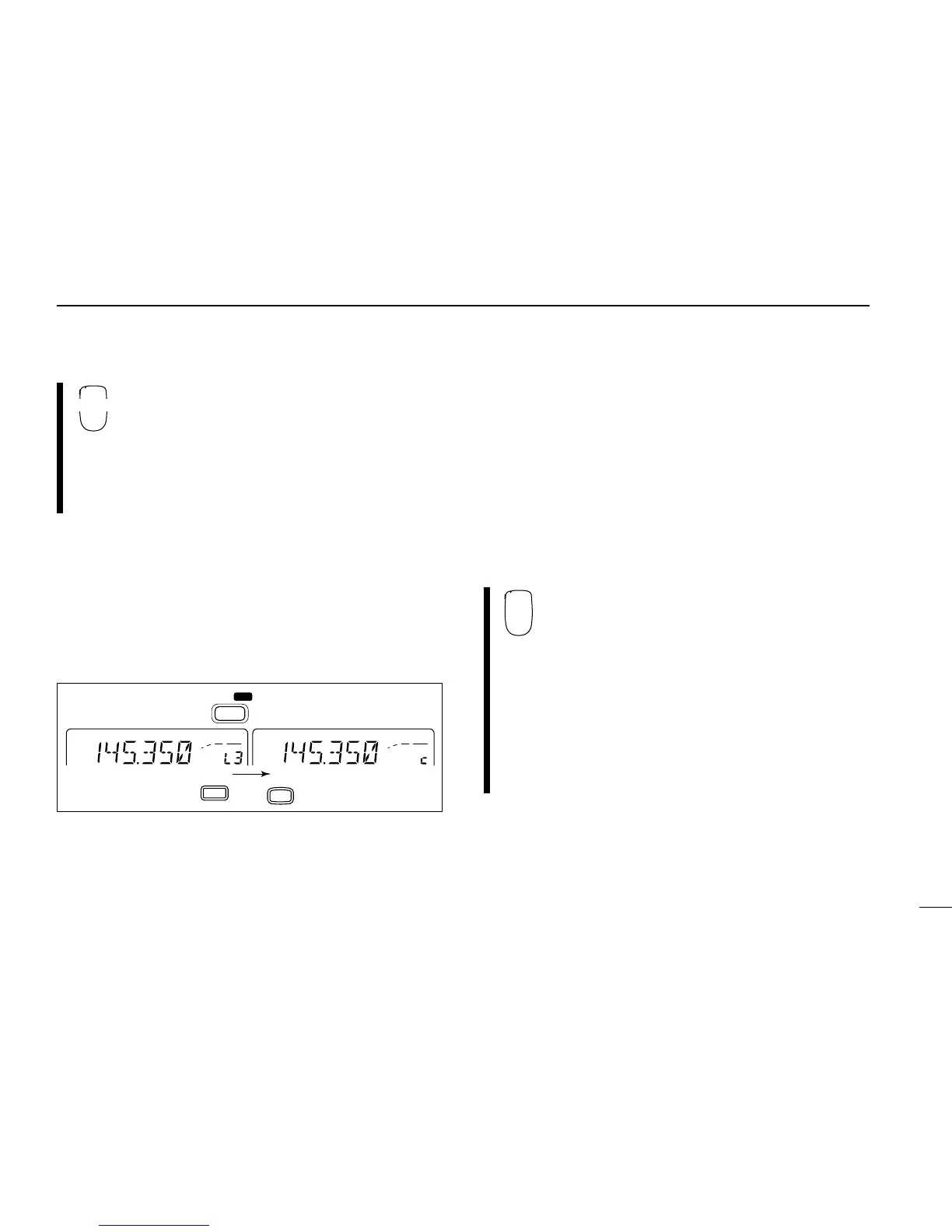 •“!––” flashes to indicate VFO as the transferring channel.