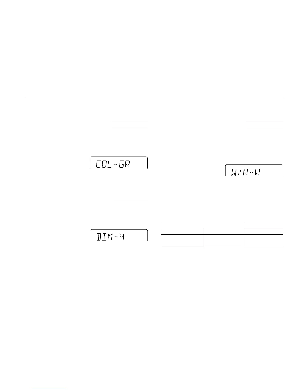 ➀ Push [SET] one or more times until “COL” appears.
