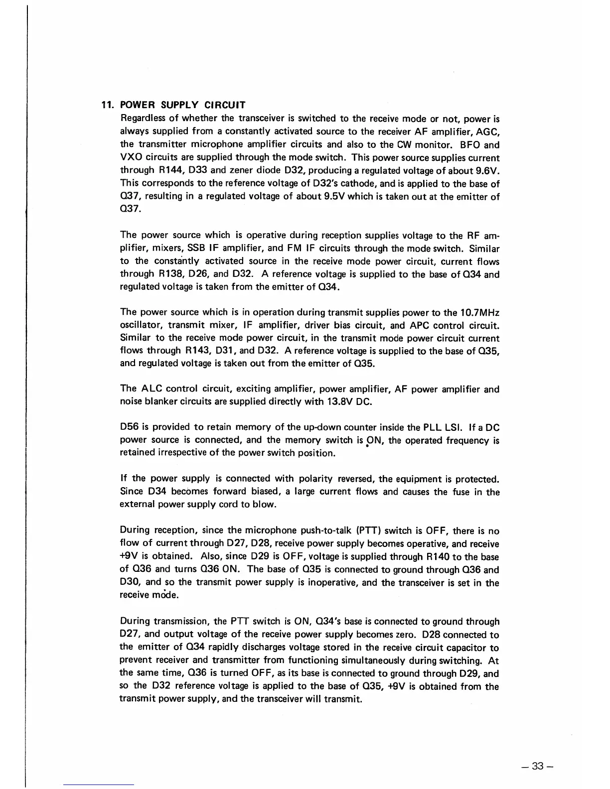 Icom IC-211 - POWER SUPPLY CIRCUIT