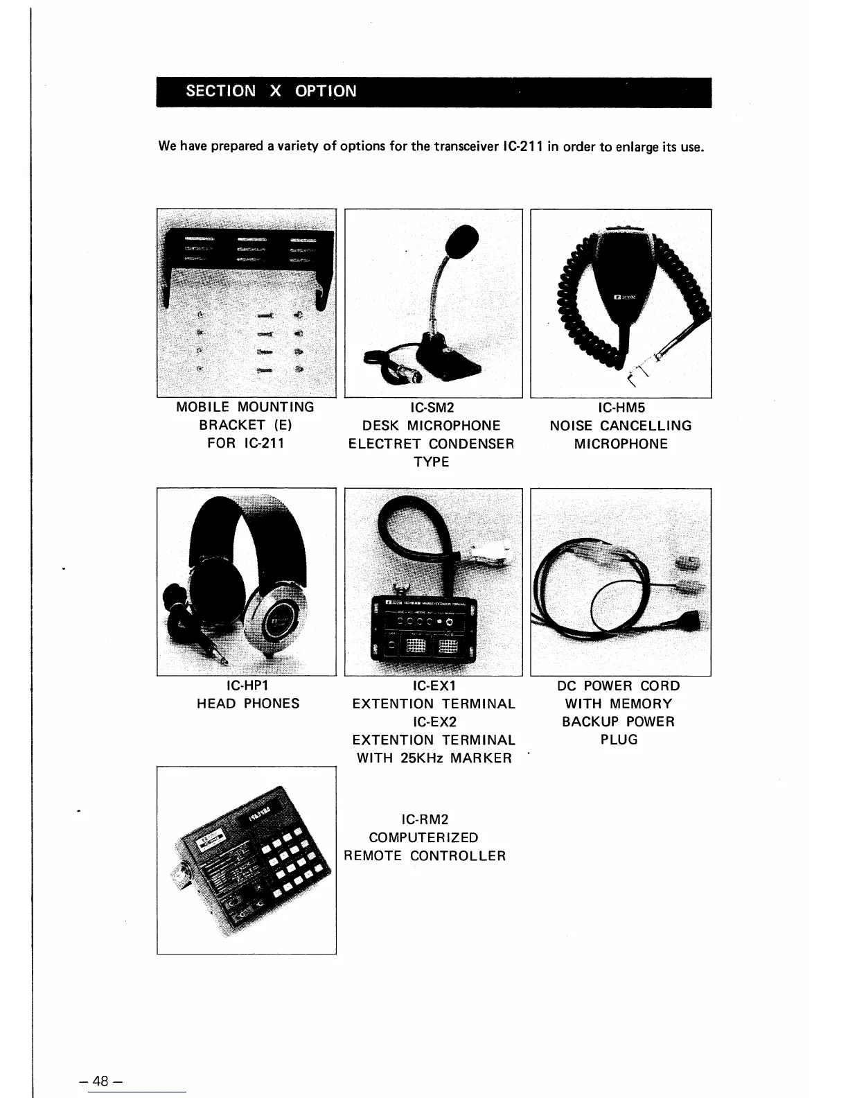 Icom IC-211 - SECTION X OPTIONS; MOBILE MOUNTING BRACKET; REMOTE CONTROLLER