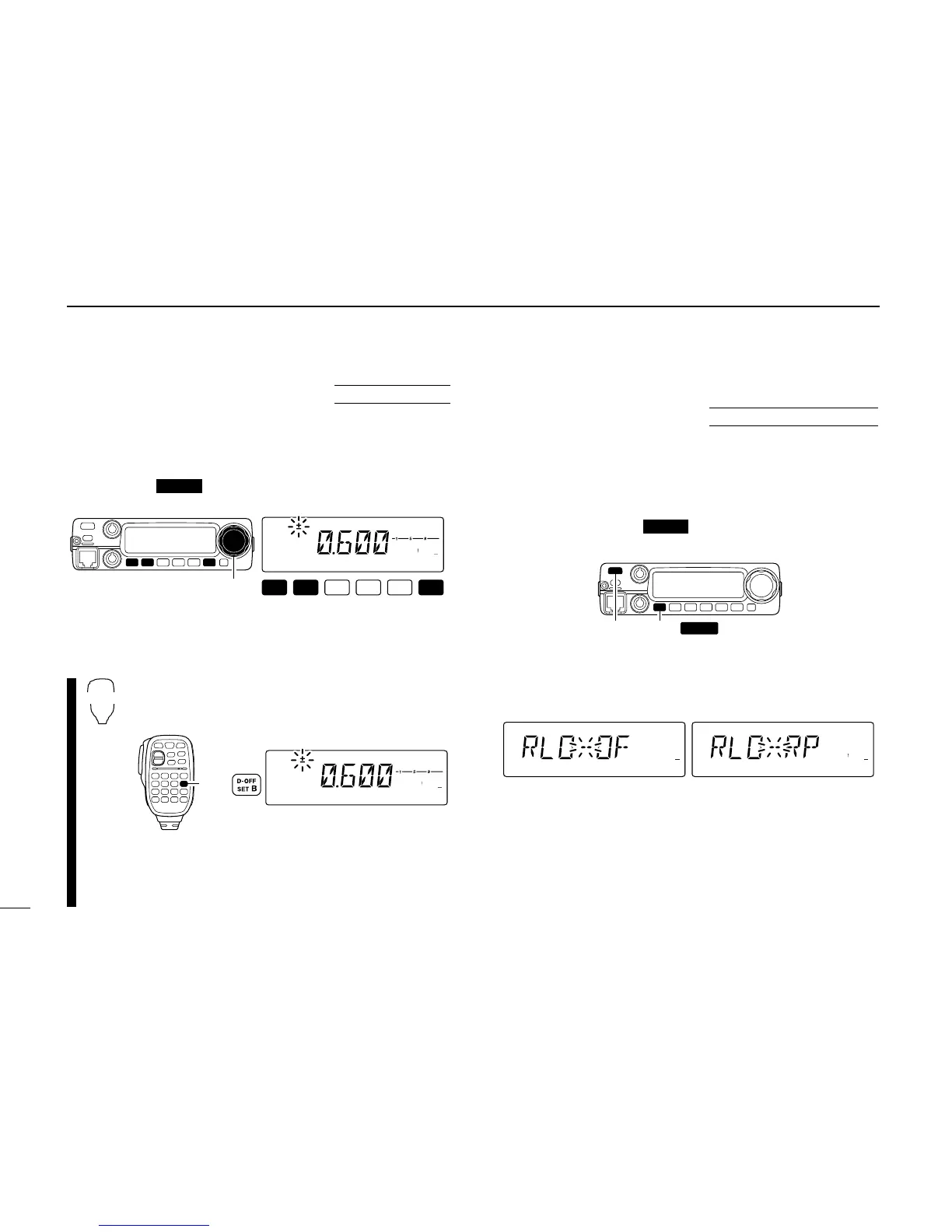 e Push [SET] or [MONI] several times until the “RLO” dis-