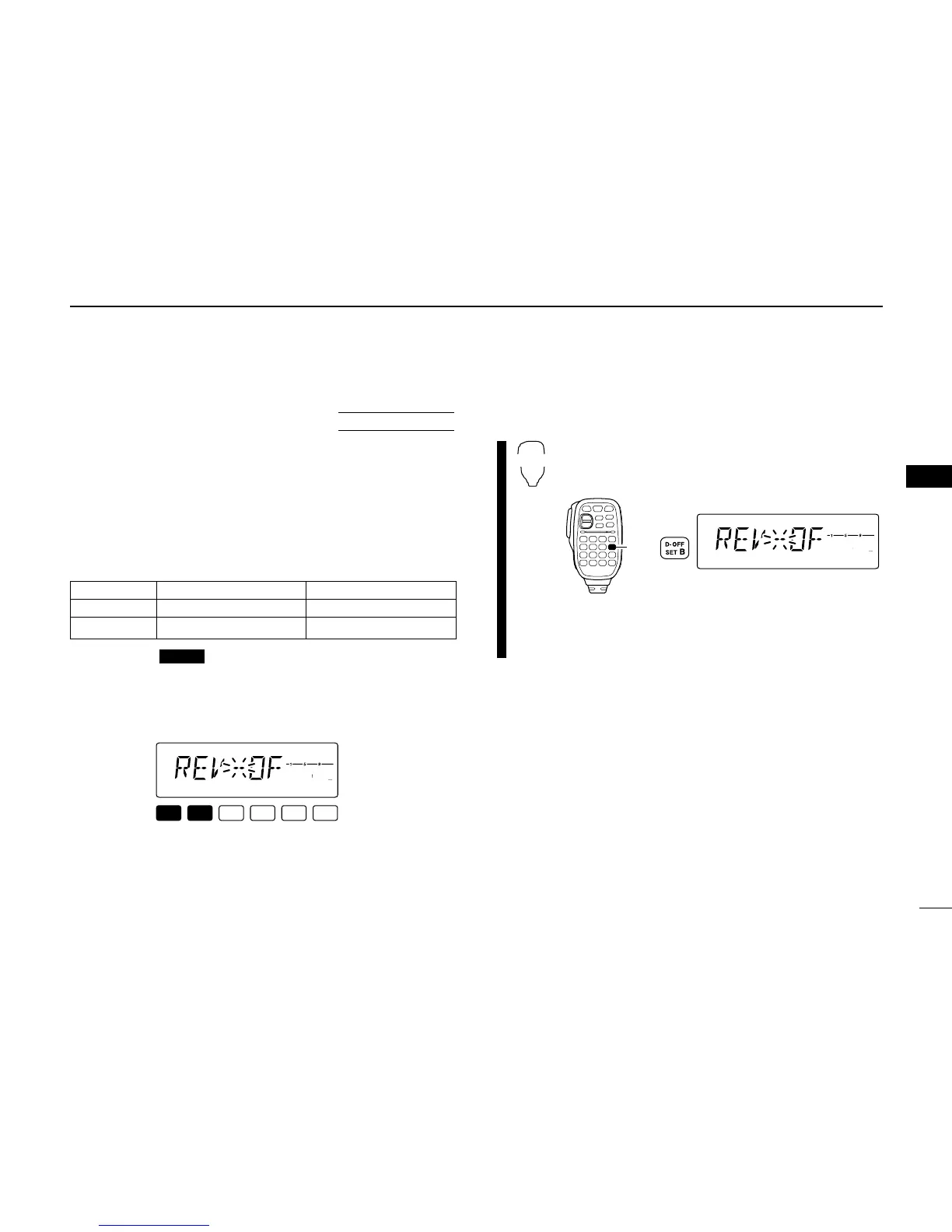 w Push [SET] or [MONI] several times until the “REV” dis-