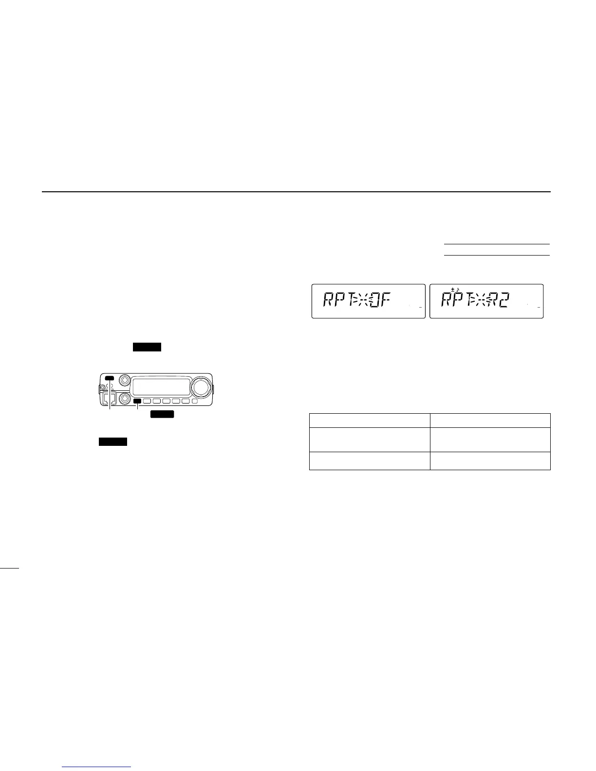 • “R2”: auto repeater is ON, tone encoder is ON.