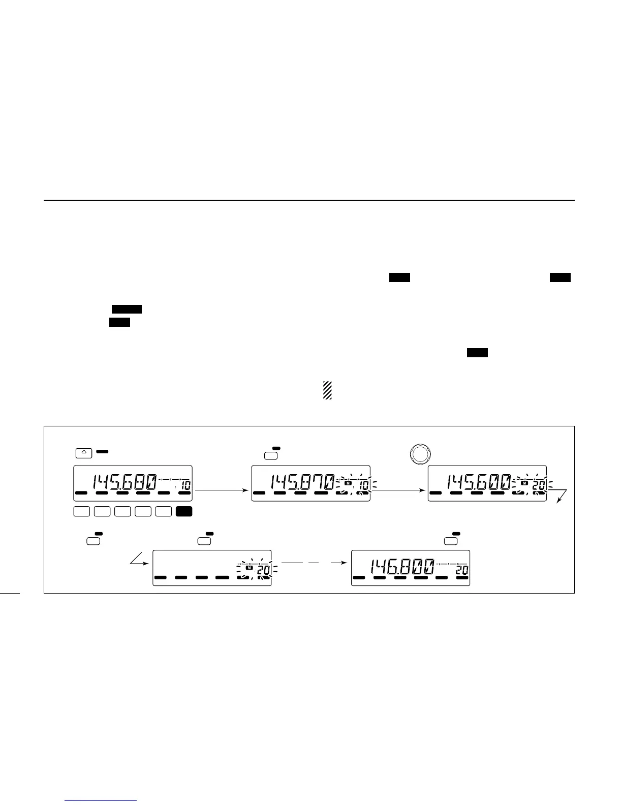 Push to select VFO. Push momentarily. Rotate for selecting memory channel..