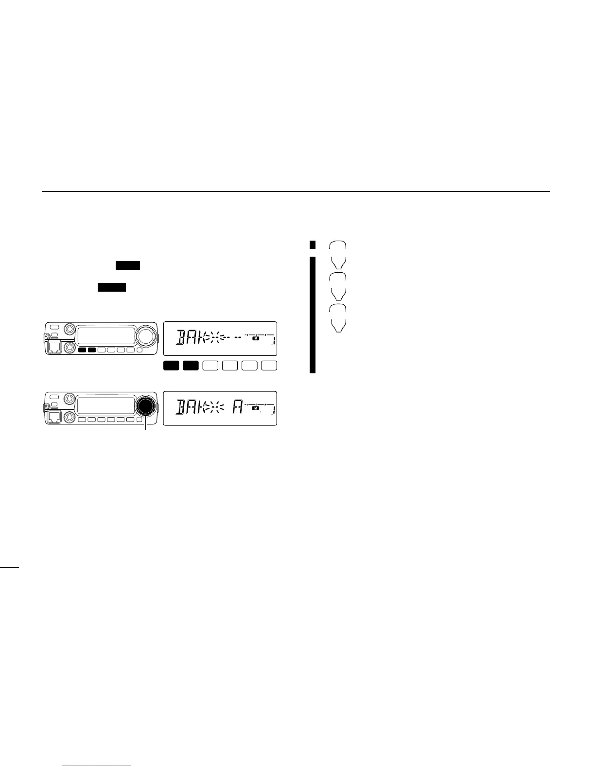 e Push [SET] or [MONI] several times until “BAK” appears.