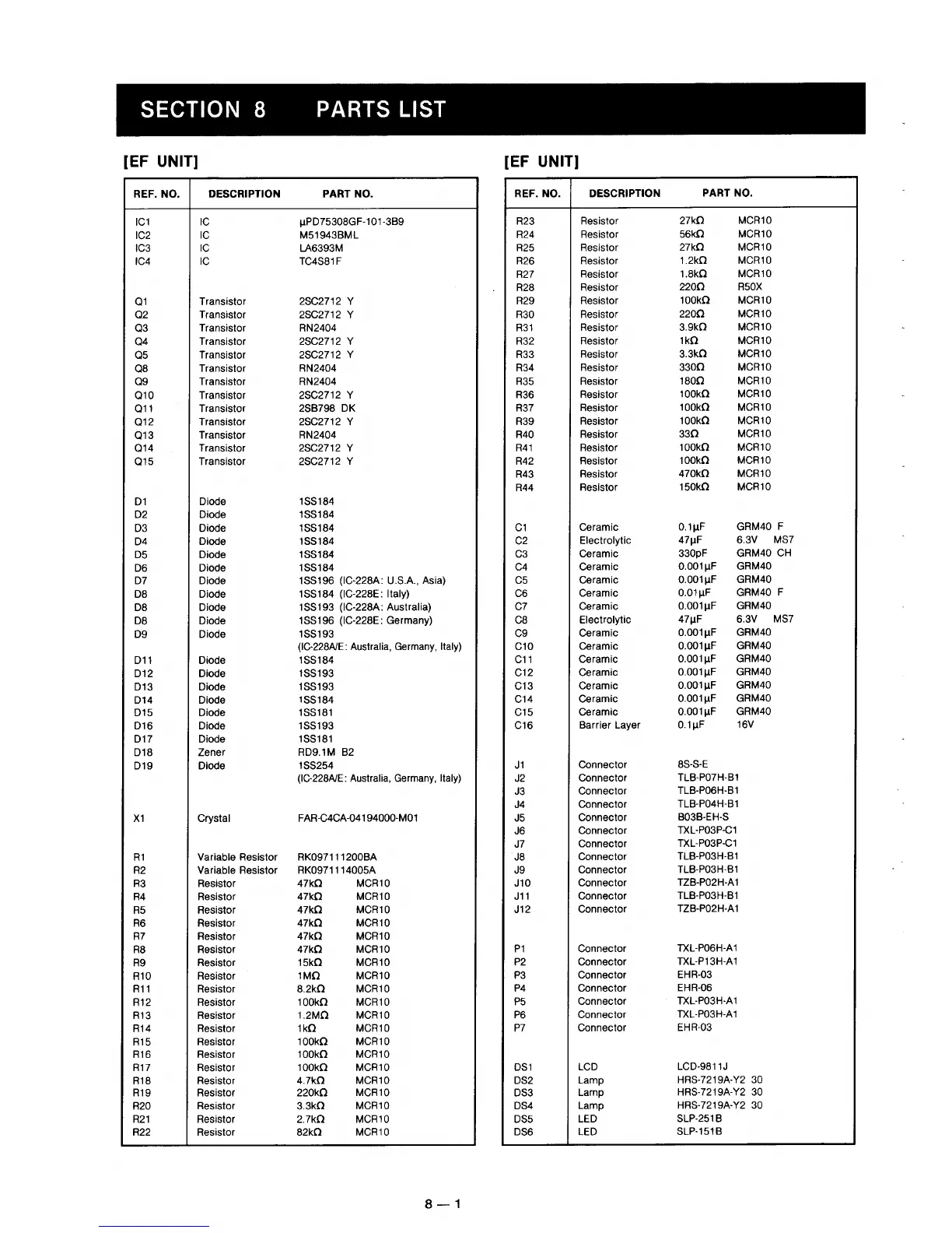 Icom IC-228H - Section 8: Parts List; EF Unit Parts List
