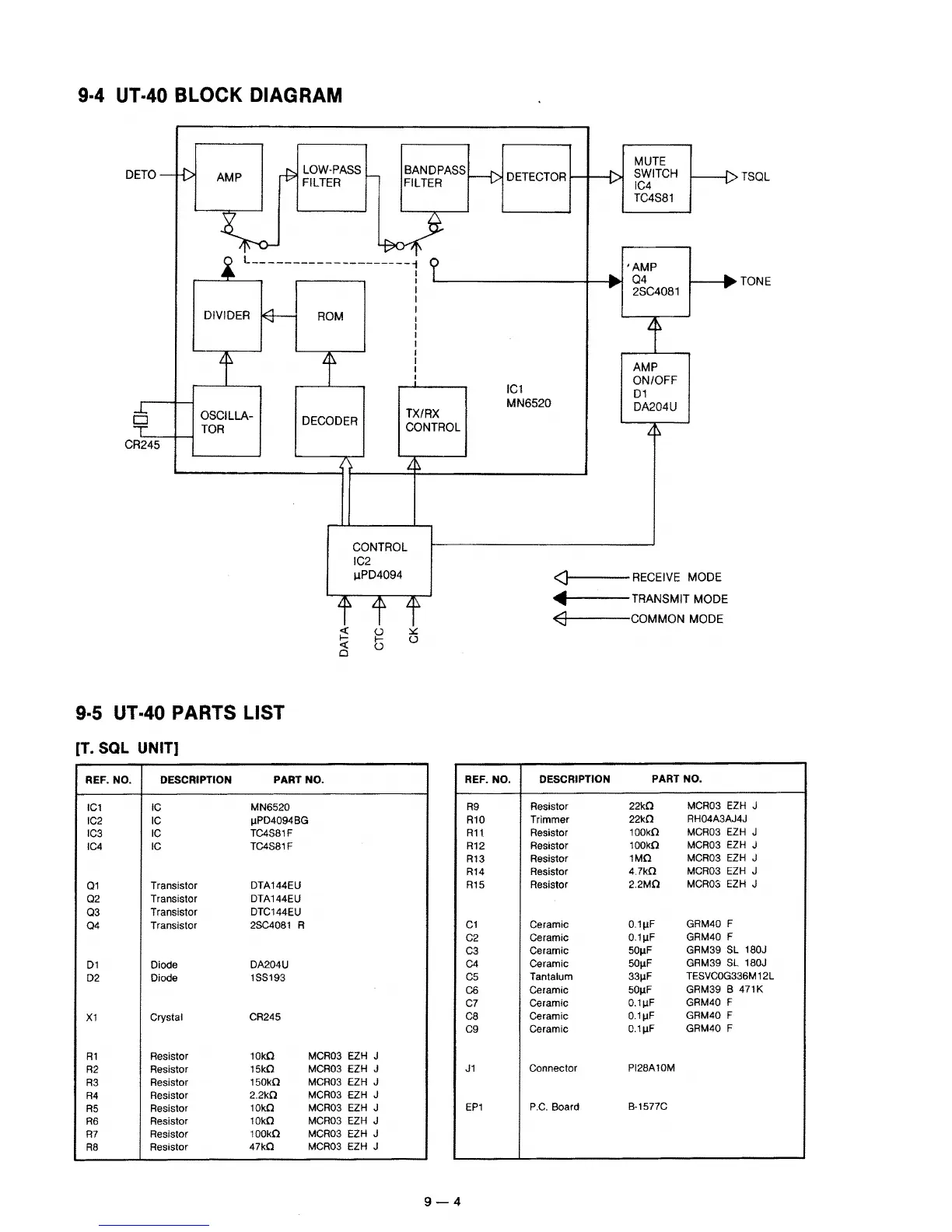 Icom IC-228H - UT-40 Block Diagram; UT-40 Parts List