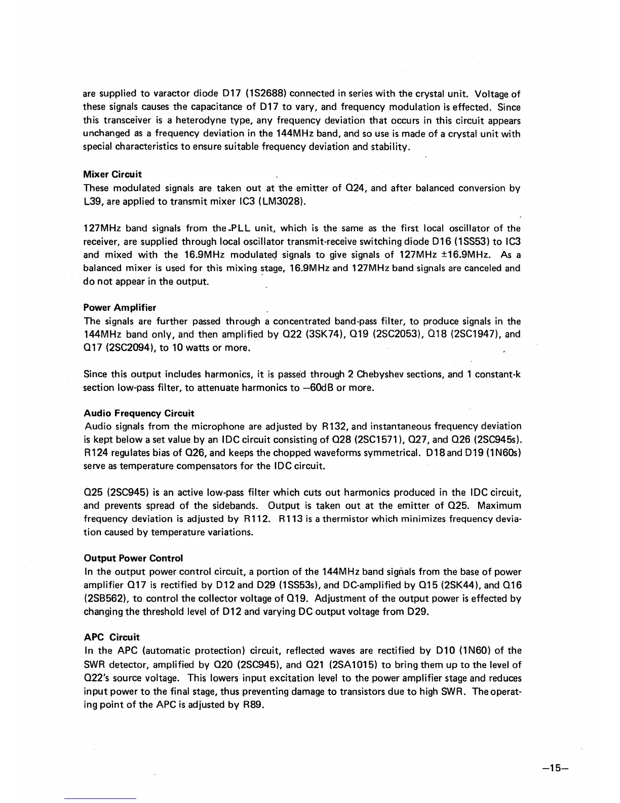 Icom IC-22U - 16.9 MHz OSCILLATOR AND MODULATION; MIXER CIRCUIT THEORY; POWER AMPLIFIER THEORY; AUDIO FREQUENCY CIRCUIT THEORY
