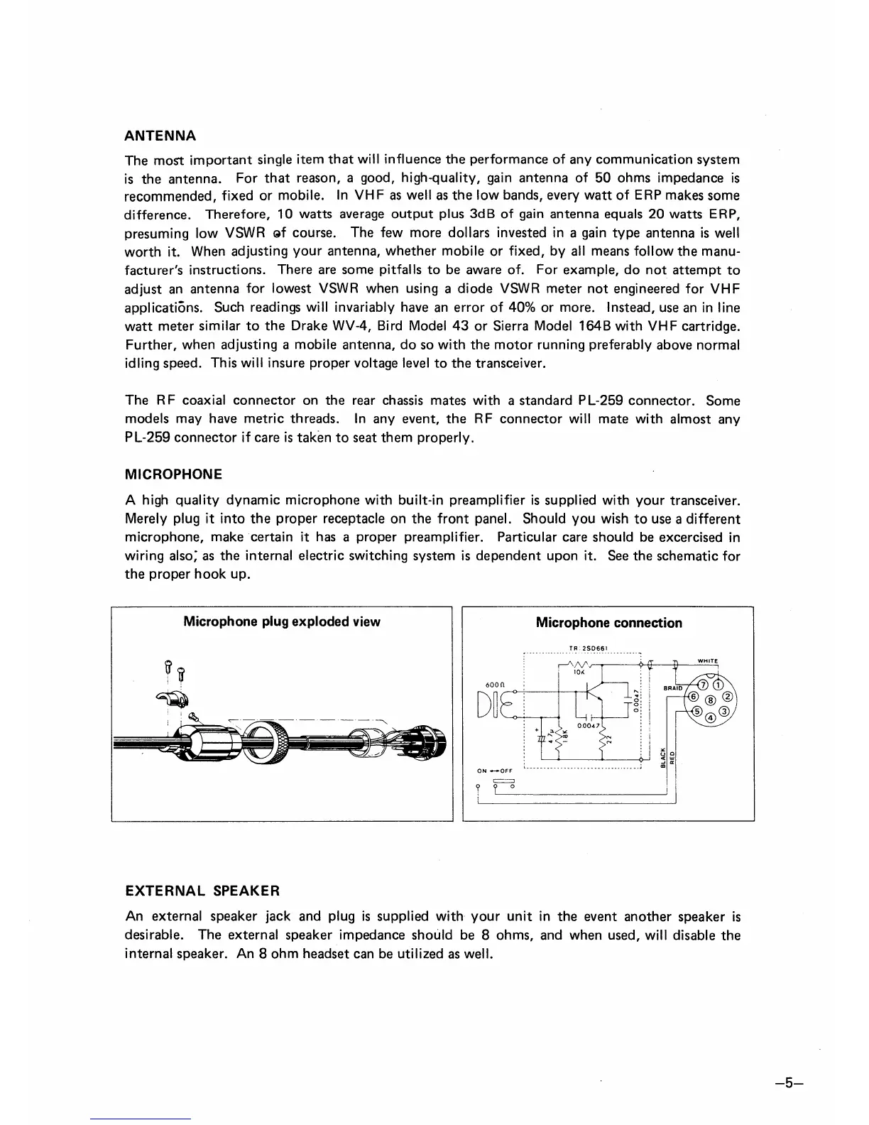 Icom IC-22U - ANTENNA CONNECTION AND ADJUSTMENT; MICROPHONE CONNECTION; EXTERNAL SPEAKER CONNECTION