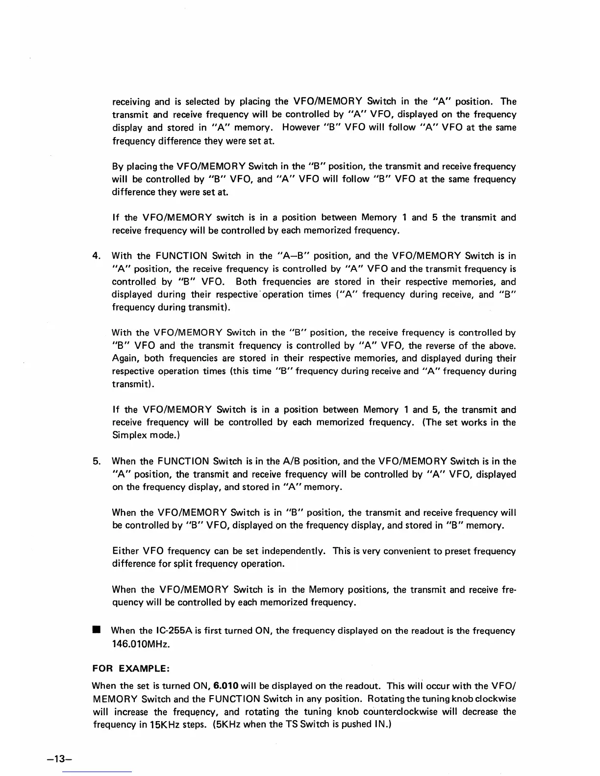 Icom IC-255A - Advanced VFO;Function Switch Operations