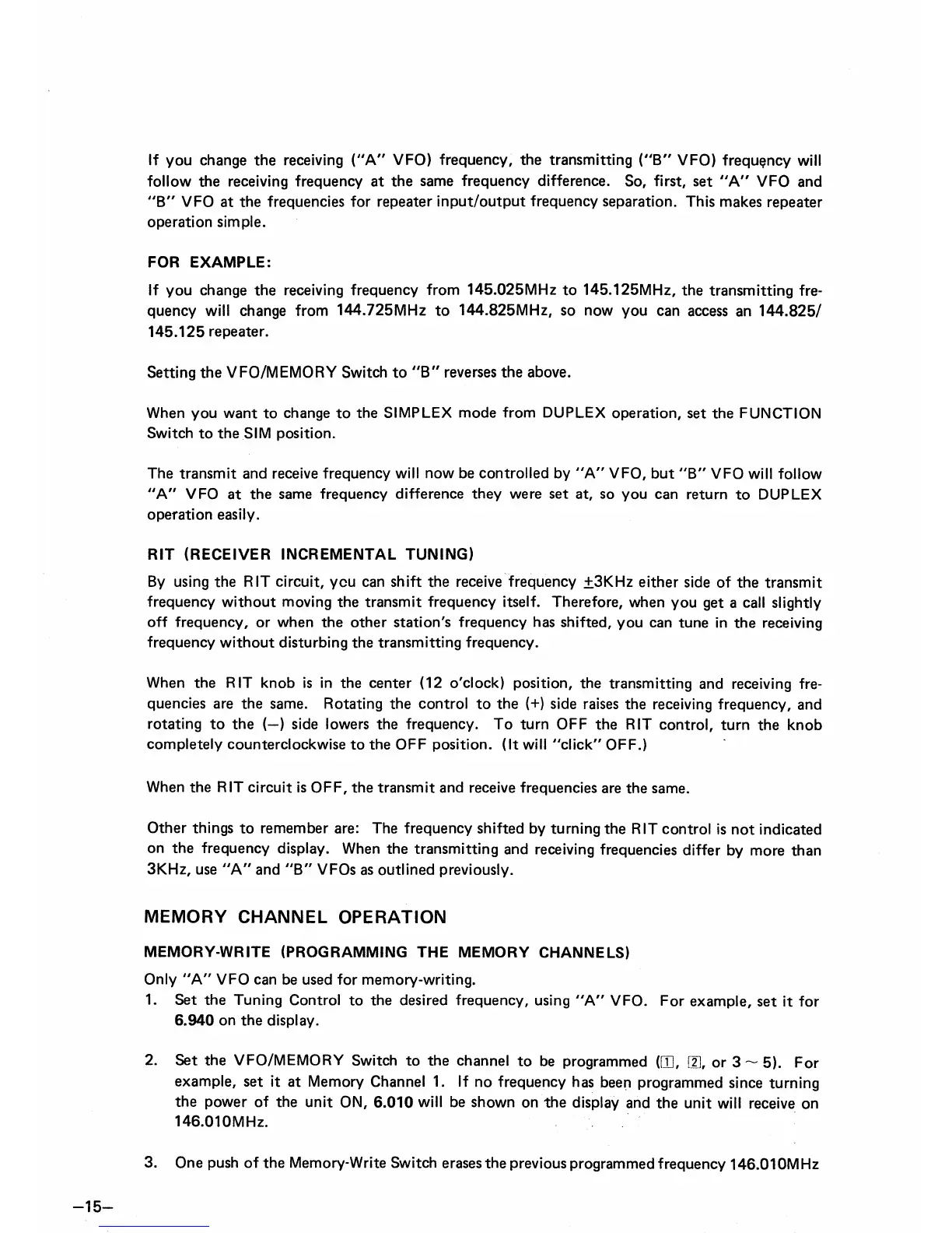 Icom IC-255A - Receiver Incremental Tuning (RIT); Memory Channel Programming and Reading